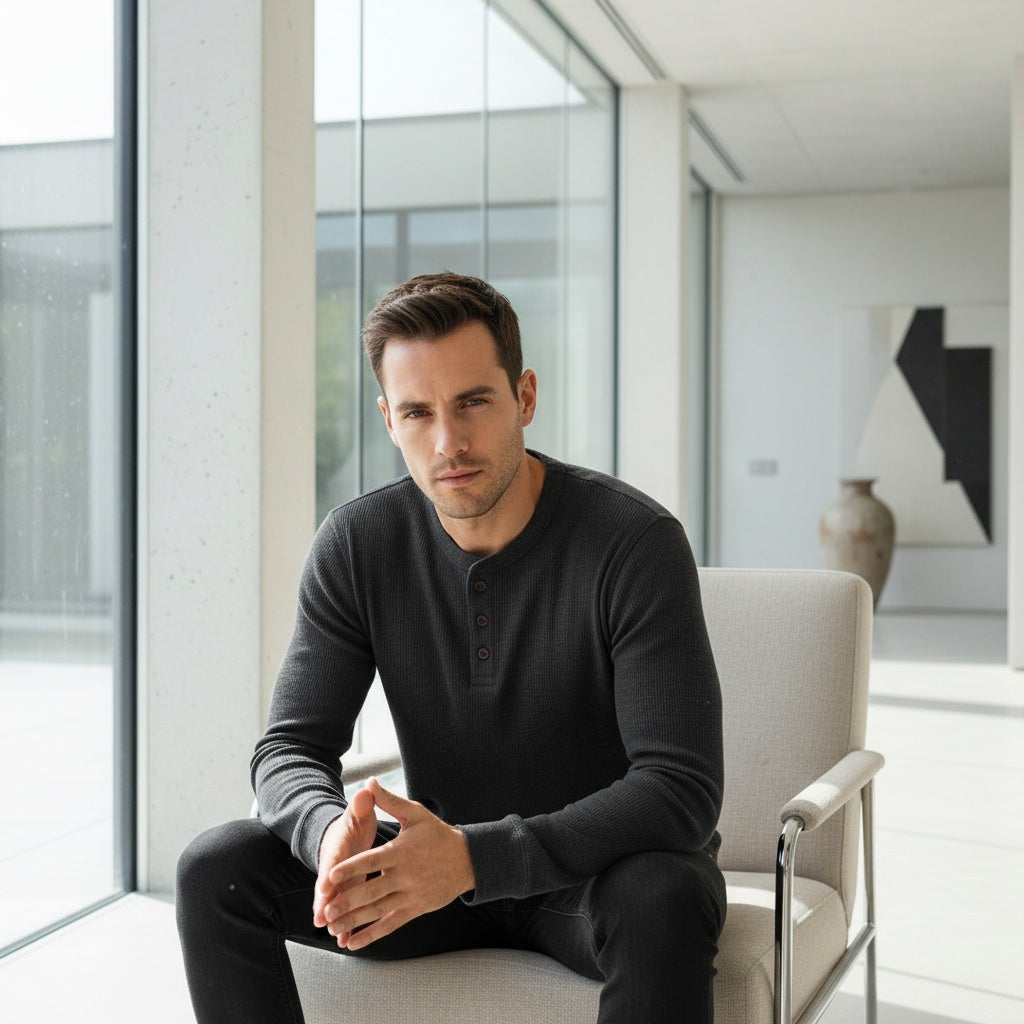 Treat this grey henley as the anchor piece your t-shirts drawer was missing. It balances perfectly with selvedge denim, joggers, or tailored shorts, and it slots under overshirts, cardigans, and light parkas. The light grey tone lifts navy, olive, and black, while staying crisp with white sneakers. For a polished casual look, pair the shirt with dark chinos and a leather belt; for a sport feel, switch to tech shorts and trainers. The ribbed neckline makes jackets lie flat, and the soft cotton keeps you comfortable in A/C interiors and warm evenings alike. If you prefer long sleeves in winter, keep this short sleeve henley on hand for indoor layers and gym sessions.